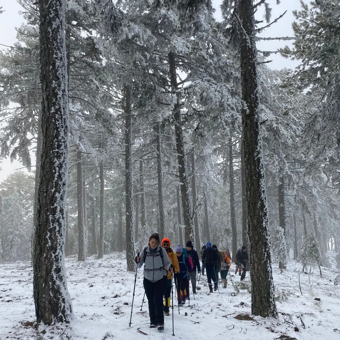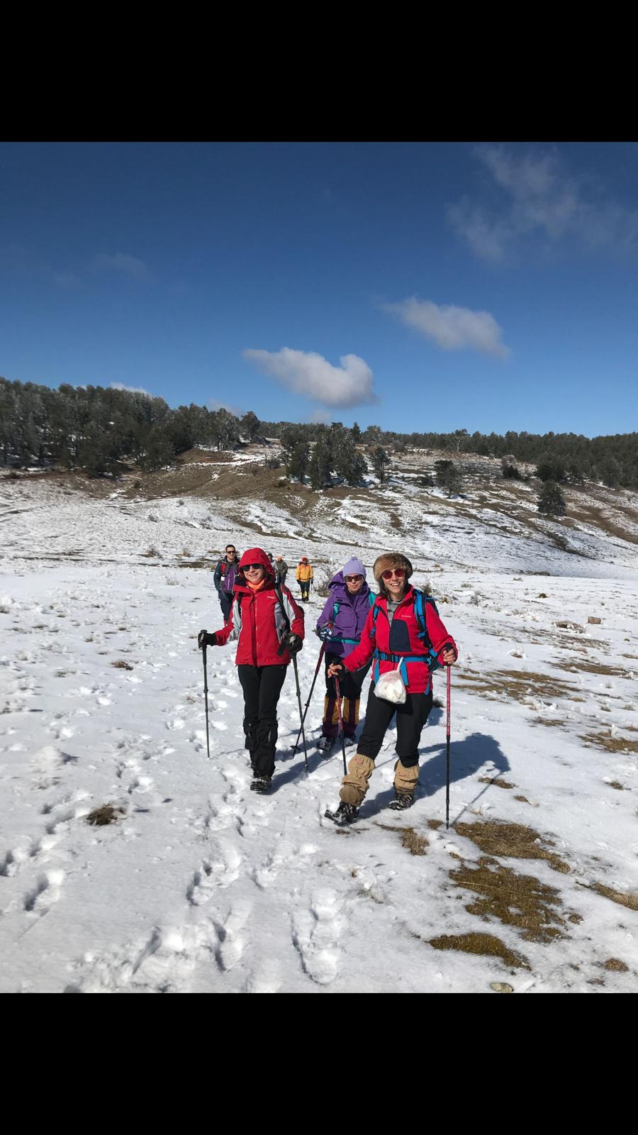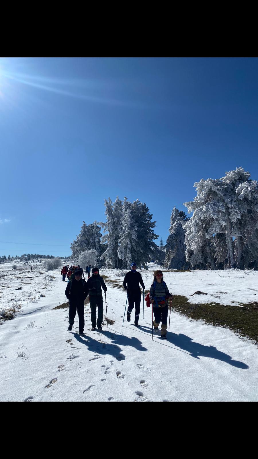Soğuğunun meşhurluğu ile çok duyduğum Demirci şanına yakışır bir şekilde karşıladı bizi. Sert rüzgarıyla sardı sarmaladı, sevgi dolu sıcacık!! sevgisiyle kucakladı bizi. Bu sevgiden dolan gözlerimizle başladık adımlamaya. Soğuğa rağmen muhteşem manzaraya kayıtsız kalmak da mümkün değildi. Günün ilk ışıkları süzülürken ormana, o sis ve güneş uyumunun eşsizliğinde ruhumuzu güzelliklere doyurarak devam ettik. Parkur gittikçe güzelleşti. Bu güzel manzaraya kar da eşlik etmeye başladı yükseldikçe. Karda yürürken çıkan seslere bir de ekibin beğeni nidaları eşlik ediyordu. Gerçekten son zamanlarda gördüğüm en iyi kar manzarasıydı diyebilirim. Devasa ağaçlardaki öbekleşmiş karlar o kadar etkileyiciydi ki nefes kesiyordu. Yürürken her yerin fotoğrafını çekme çabamızın tatlı bir telaşa dönüştüğünü gören rehberimiz ilerde daha güzel yerlerin olduğunu söyleyince manzaranın keyfini çıkararak adımlamaya devam ettik. Tam bir görsel şölen olan bol karlı bir alana denk gelince fotoğraf için mola verdik. Fotoğraf molası eğlenceli bir kar topu şavaşıyla devam etti. Ama devam etmemiz gerekiyordu çünkü gelinuçtu tepesi bizi bekliyordu. Oraya vardığımızda bir yorgunluk kahvesi molası verdik, manzaranın tadını çıkararak yudumladık kahvelerimizi. Dönüş yolunu da aynı keyifle bitirdik ve otobüsümüzün bizi alacağı yere vardığımızda 18 kilometrelik yürüyüşün yorgunluğundan ziyade yenilenmiş ruhlarımızın mutluluğu, keyifli bir pazar daha geçirmiş olmanın neşesiyle doluyduk.